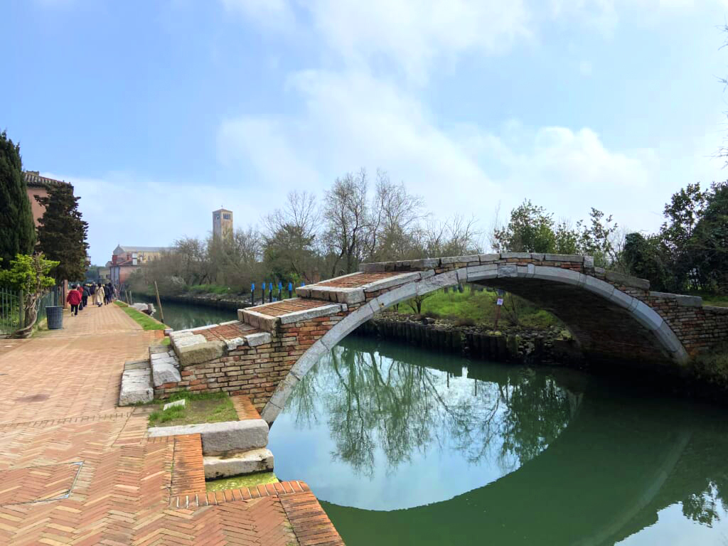 せっかくのベネチアでの贅沢な連泊でしたので、さらに別の島々にも足を伸ばしました。ムラーノ島は、各島々に行く水上バスが出る場所なので、移動も楽に散策を楽しむことができます。まず訪れたのは「ベネチアが始まった場所・トルチェッロ島」。ここはよりイタリア本土に近く、ベネチアに渡った人々が最初に定住を始めた場所です。島には小さな運河が通っていて、その両脇は建物ではなく植物です。こんなに素朴なベネチアがあることに驚きました。