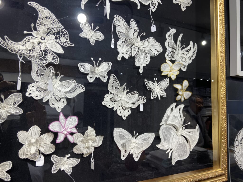 さらに午後には、ブラーノ島へ。まるでおもちゃのように鮮やかな色使いの家が多く、運河沿いに並ぶ様は、本島と異なる可愛らしさを感じました。ここでの注目は、島の特産品であるブラーノレース。かつてベネチアングラスと同様に、ベネチア共和国の経済の一端を支えた手工芸品でした。島を歩くと、いたるところで見つけることができます。まさに本島だけ訪れていては知ることができないベネチアの一面でした。