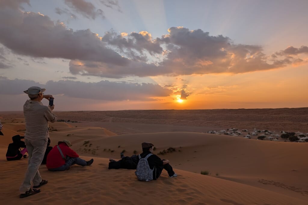 サンセットはロッジ目の前の砂丘から見学、そして日の出は少し砂丘ドライブも楽しみながら、ロッジから離れた砂丘の上から見事な日の出を眺めました。キャンプロッジは通常のホテルと遜色ない設備が備わっていますので、砂漠に泊まってみたいが、設備面が不安という方に是非おすすめです。