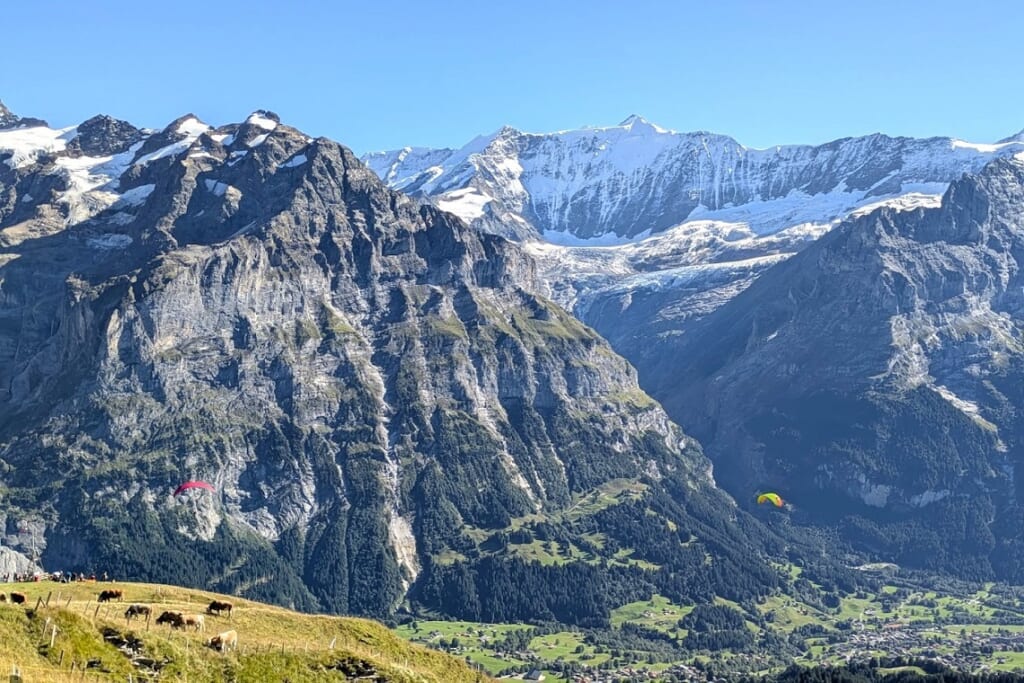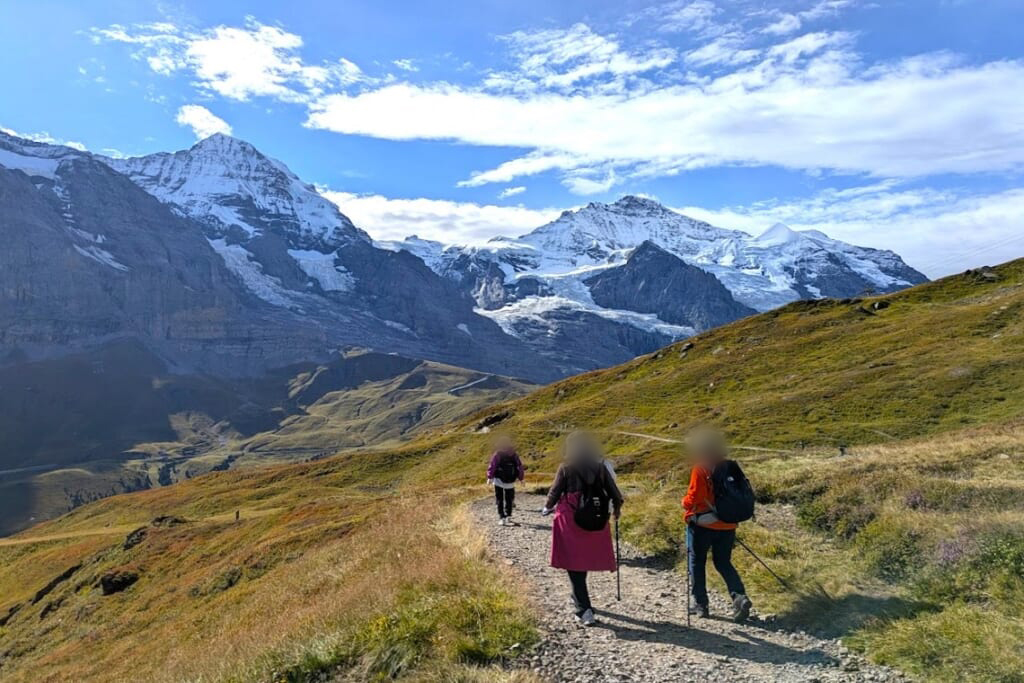 山の天気は気まぐれ。せっかくここまで来ても滞在時間が少なければ、山々を見られないこともしばしば。今回はグリンデルワルト5連泊、自由時間もたっぷりとっているためアレンジがききます。晴れた日を狙ってフィルスト展望台の訪問と、メンリッヘンからクライネシャイデックまでのハイキングを行いました。