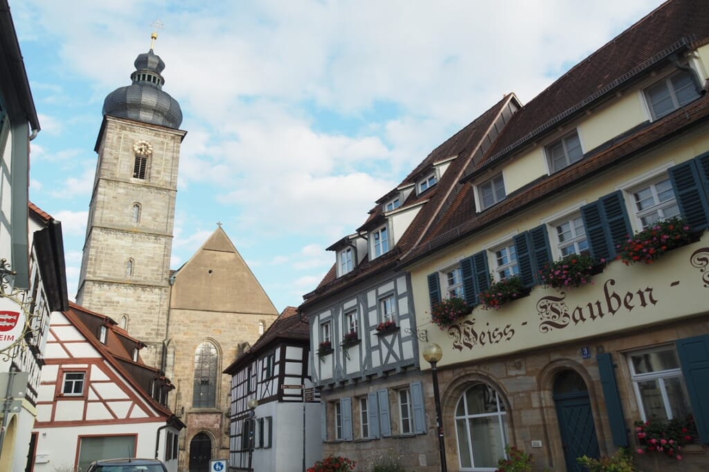 町の歴史は古く、805年にカール大帝が発布した勅令にこの町の名前が登場します。長らくバンベルク司教の領地となっていましたが、19世紀初頭にはバイエルン選帝侯によってバイエルン公国の一部となりました。旧市街の中心には木骨組みの家々が残り、14~16世紀にかけて建設された市庁舎、14世紀後半にバンベルク司教の館として建設された「フォルヒハイム城」などがあります。日本人グループがフォルヒハイムを訪れるのは初めて! ということで、地元観光局のスタッフが歓迎に来てくれました。