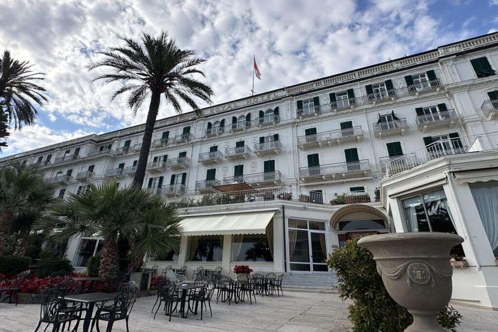 旅の後半は、イタリアン・リビエラを代表するリゾート地サンレモへ。歴史ある「ロイヤル・ホテル・サンレモ」のシービューのお部屋で、地中海の青と光を感じながら、優雅なひとときをお過ごしいただきました。