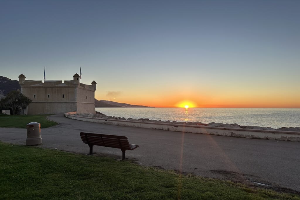 マントンでは、4連泊のゆとりある滞在を通じて、地中海の港町ならではの穏やかな時間をお楽しみいただきました。朝は希望者で旧港まで朝日を浴びながら散策し、水平線から昇る太陽、朝焼けに染まる旧市街の美しさに心癒されました。
