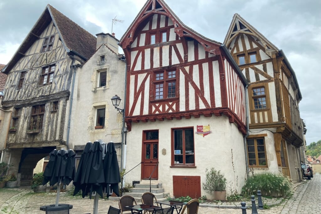 ノワイエ・シュル・スランにある木骨組の家並みは、まるで中世にタイムスリップしたかのよう