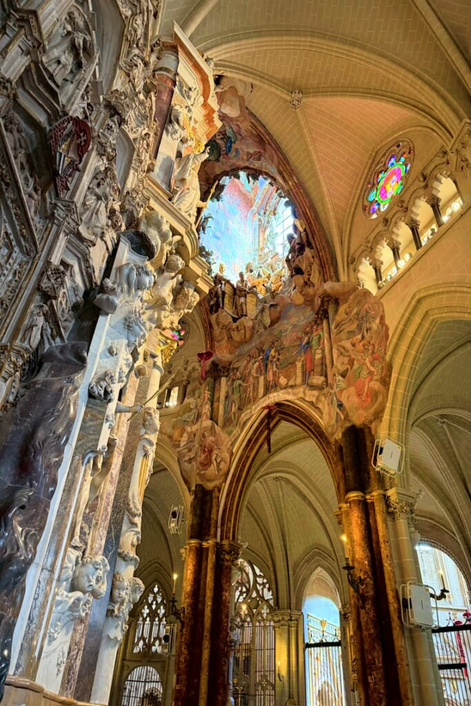 トレドでは、丘の上にある「パラドール・デ・トレド」に2連泊し、「要塞都市」と呼ばれる街並みを堪能しました。トレドは16世紀にスペインの首都だったこともあり、当時の文化や芸術が今も残っています。ムデハル様式の傑作サント・トメ教会では、壮大なカテドラル内部をじっくりと見学。特別室にあるエル・グレコの名作『オルガス伯爵の埋葬』も鑑賞しました。また、トレドの名物マジパンを試食したり、旧市街を散策したり、古都の滞在を満喫しました。
