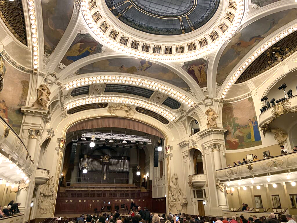 旅のハイライトの一つだったのが、日本でもファンの多いミュシャが18年間もかけて描いたという巨大な「スラヴ叙事詩」でした。写真の通り人が見上げるような大きさで、その迫力に圧倒されます。バス移動中にも絵の中に描かれたミュシャの故郷の時計塔を見たりと、旅の間も印象がまったく薄れない存在感でした。