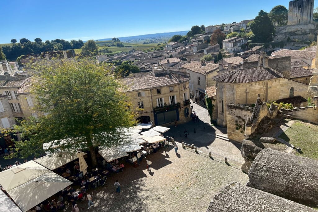 サンテミリオンの町の高台からは迷路のような古い町並みとぶどう畑が一望できます。