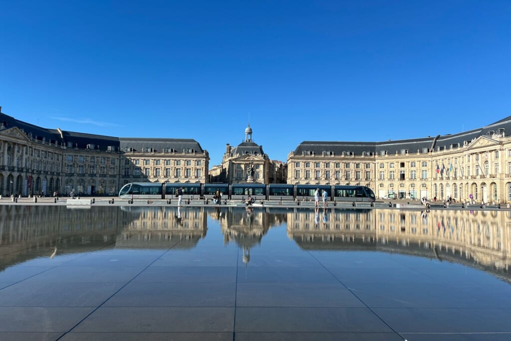 ”水の鏡”と言われ、ボルドーを象徴する美しい広場、ブルス広場