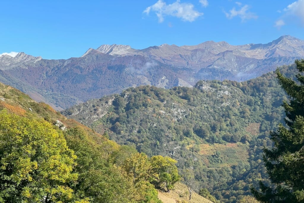 ピレネー山脈の麓の村、レスカンから眺めたピレネーの山景色