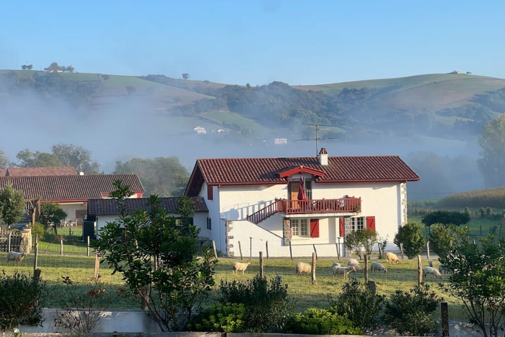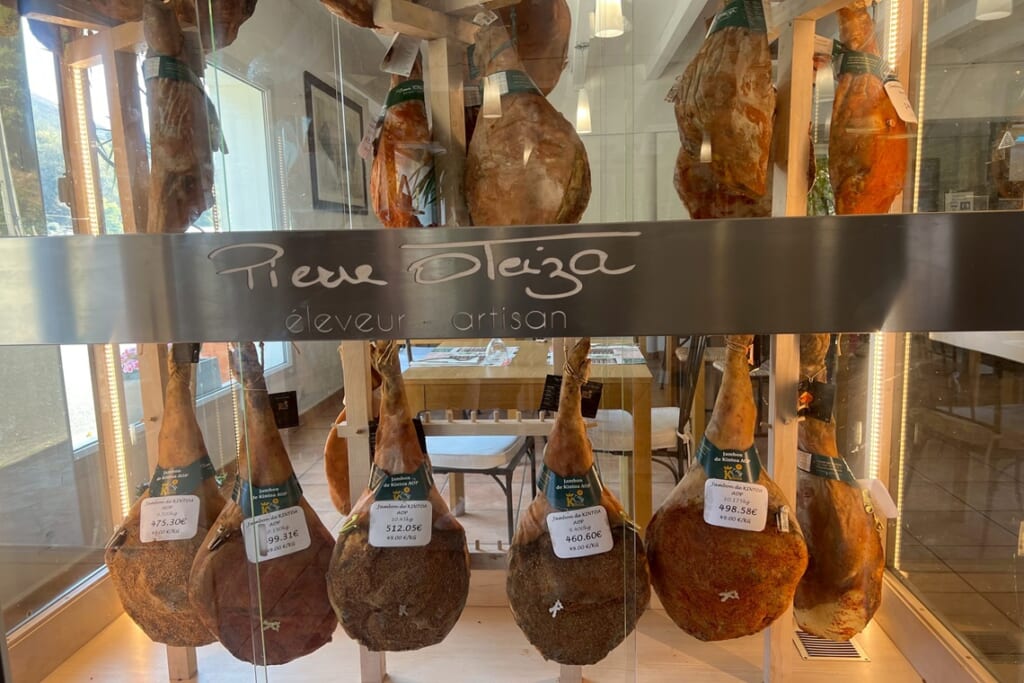 フランスからスペインへと向かう道中では、「フランスの最も美しい村」に登録されるアイノア村へ。この地方特有の白壁と赤い木骨組みの家が連なる、とても可愛らしい町並みでした。続いて訪れたアルデュード渓谷では、絶滅の危機から復活した純血バスク豚を育てる工房「ピエール・オテイザ」を見学。工房直営レストランでのバスク豚料理もいただきました。