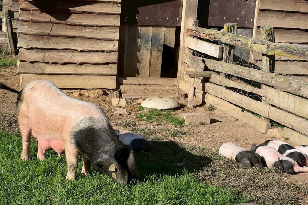 身体はピンクで頭とおしりが黒色の2色模様が、バスク豚の特徴