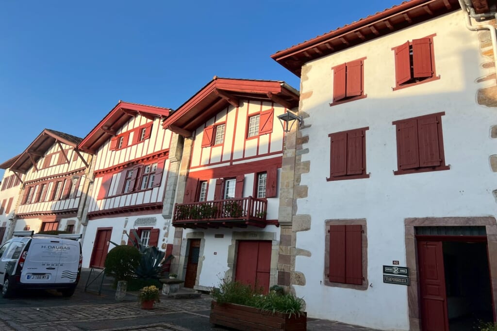 赤い木骨が特徴的なバスク地方特有の建築様式(アイノア村)