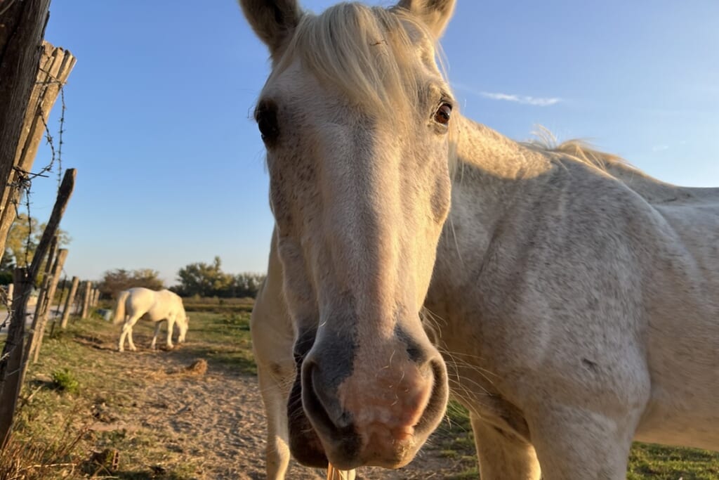 まずはローヌ川クルーズ。ファン・ゴッホ号に乗船し、アルルに寄港しました。同じクロワジ社のローヌ川クルーズでも、寄港地はその都度異なります。今回は最初にカマルグ国立自然公園で4WDに分乗して水田の広がる湿地帯や湖の周辺を駆け巡りました。カマルグといえばカマルグの塩やフラミンゴで有名ですが、それ以外にも半野生の白馬やカマルグの黒い野牛など、ヨーロッパに残る自然を目の当たりにしました。