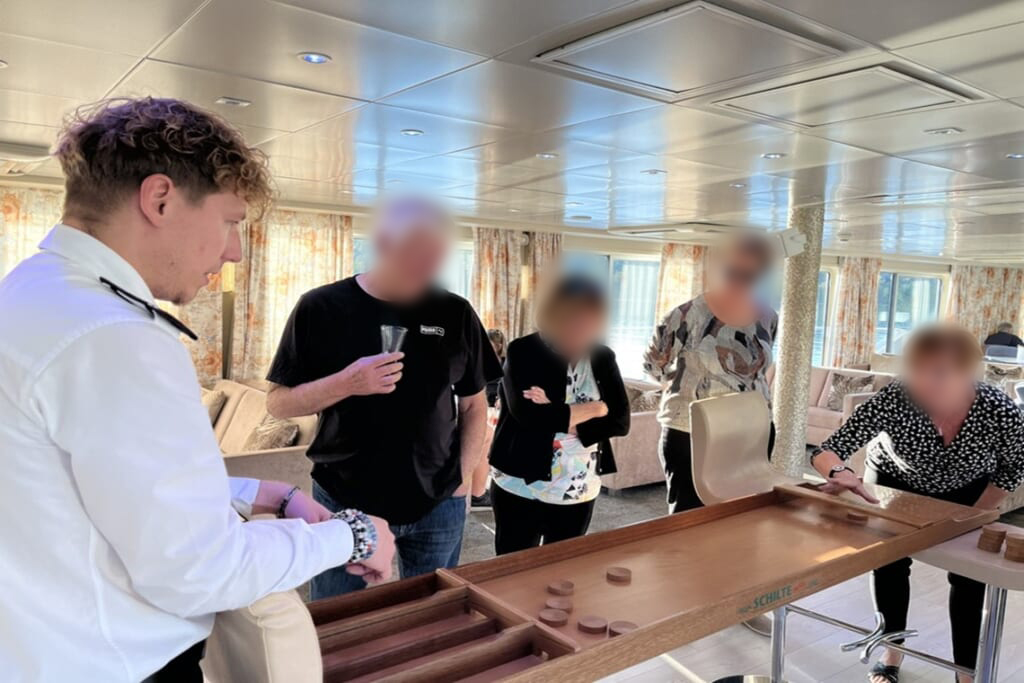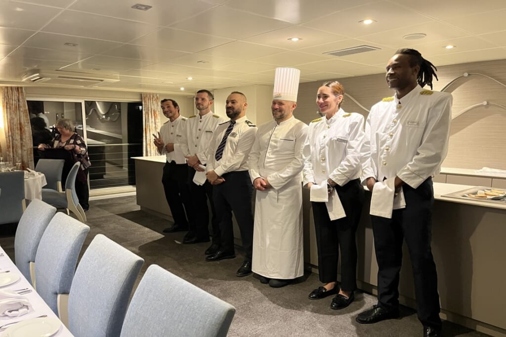乗船客は我々も含め100名弱、ほとんどがフランス人、他にカナダ人やノルウェー人、スペイン人など様々。どちらの船もウェルカムパーティーやガラディナー、ボードゲームやクイズ大会など、参加者の交流を深めるイベントが数多く開催されました。
