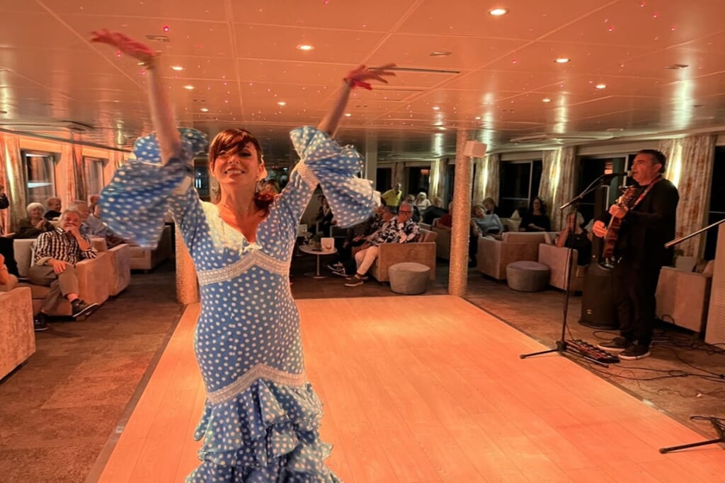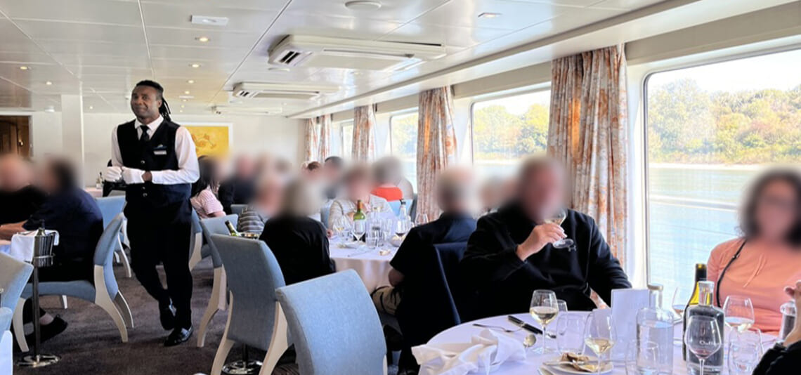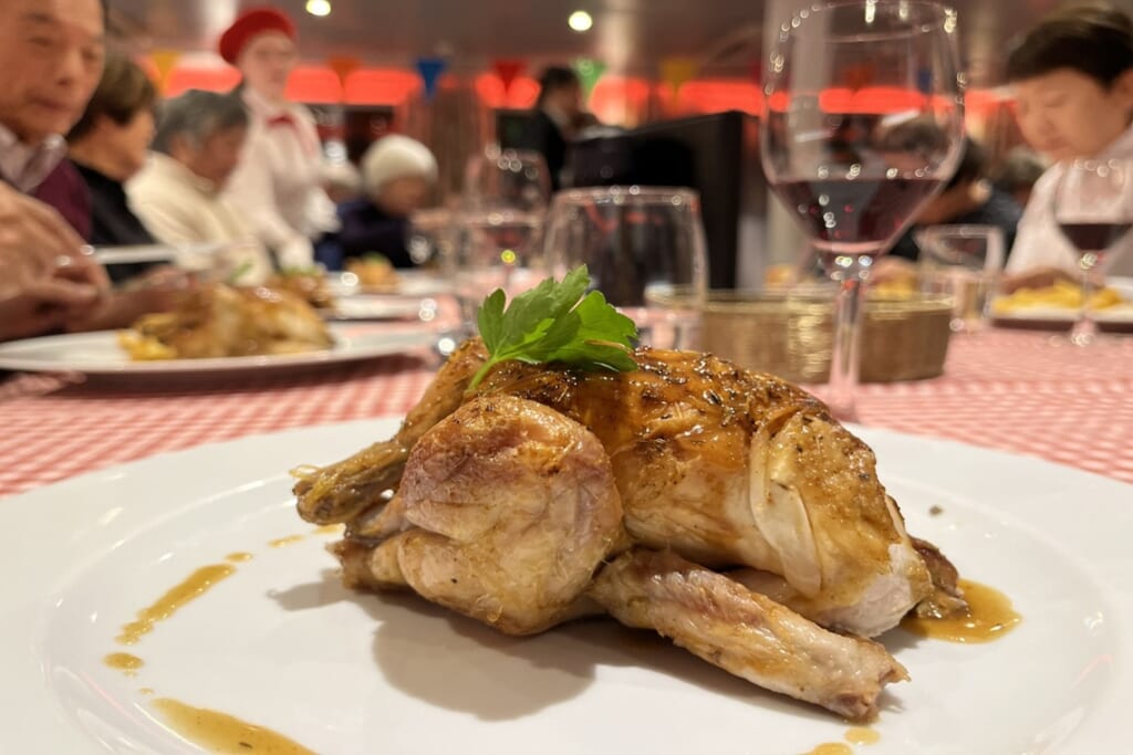 各地の特色を活かしたお食事も、この船旅の大きな魅力のひとつです。さらに今回は我々のグループのお祝いを乗船客の皆さんにもお祝いしてもらったり、フランスの方のお誕生日に日本語で合唱のサプライズをして喜ばれたりと、クロワジの船ならではの温かい交流が心に残る船旅となりました。