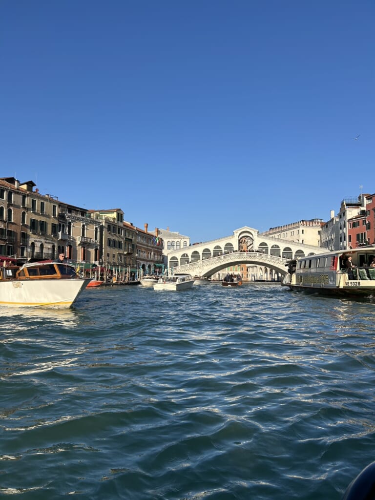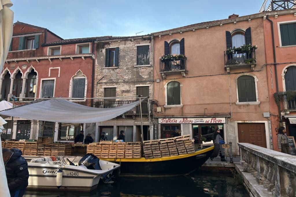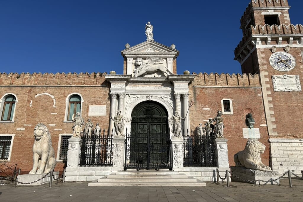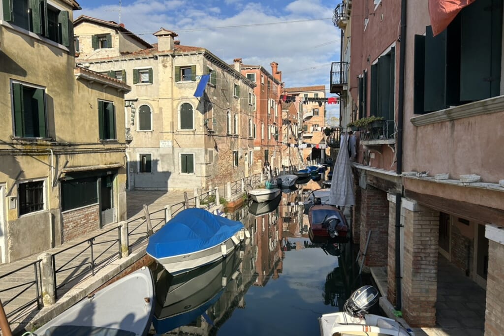 中世には「アドリア海の女王」ベネチア共和国の首都として栄えた本島の、東に位置するカステッロ地区へ。住宅が所狭しと立ち並び、日常感溢れる素朴な雰囲気を感じながら散策へ。ベネチアが発展するきっかけであった1000年以上の歴史を持つ造船所アルセナーレを訪ね、当時どれほどの富と勢力を持っていたか感じ取ることができました。本島でも道は入り組み、細い水路が数多く通っています。これらは、高潮の被害が懸念され続けてきたベネチアを守り続け、水(海)と共存する国をつくりあげてきました。島内では車のみならず自転車の乗車も禁止のため、階段の小橋が水路を跨ぐようにかかっています。街角を曲がるたび、橋を渡るたび、趣ある風景に出会うことができます。