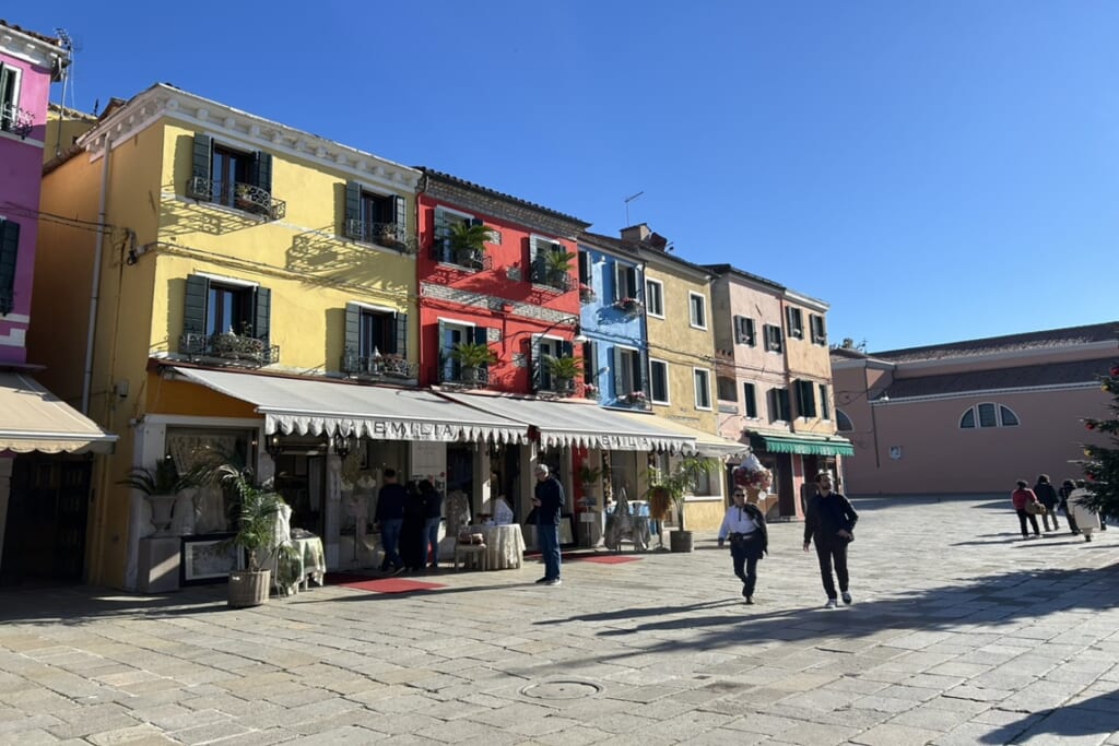 ブラーノ島では色鮮やかな家屋が並ぶ可愛らしい町並みが。以前、ほとんどの住民が漁師だったので、漁から戻ってきた時に自分の家を見つけやすいように鮮やかな色で塗ったことが始まりです。16世紀に漁の網から派生したといわれているレース文化にも触れ、今も店先で伝統的な手法で編むおばあちゃんたちの姿がどこか懐かしく感じます。参加者の皆様と共に、色とりどりの家々を眺めながら、島の滞在を楽しみました。