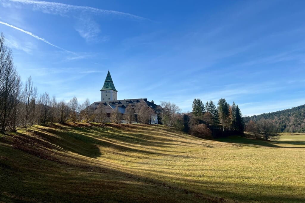 リンダウからミュンヘンへは、数あるドイツの観光街道の中で最も古い、1927年に制定された「アルペン街道」の景色を楽しみながら移動。昼食は、バイエルン・アルプスの山あいに佇むラグジュアリーホテル、「シュロス・エルマウ」にお召し上がりいただきました。G7サミットの開催地にもなったリゾートホテルです。山麓の町ミッテンヴァルトにも立ち寄りました。アルプスの山々と、ルフトマールライ(南ドイツやチロル地方特有の外壁装飾画)の家並みの調和が素晴らしく、まさに絵本のような町並みの散策を楽しみました。ミッテンヴァルトはイタリアのクレモナ出身の職人たちが移住してきたことから、弦楽器製作の技術が根付き、ヴァイオリン製作の町としても有名です。