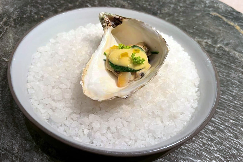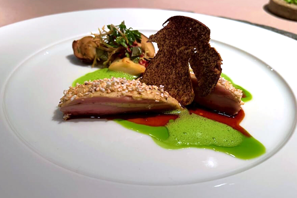 最終日の夕食は、有名ガイドで星を獲得しているホテル内レストラン「アトリエ」にて創作フレンチをいただきました