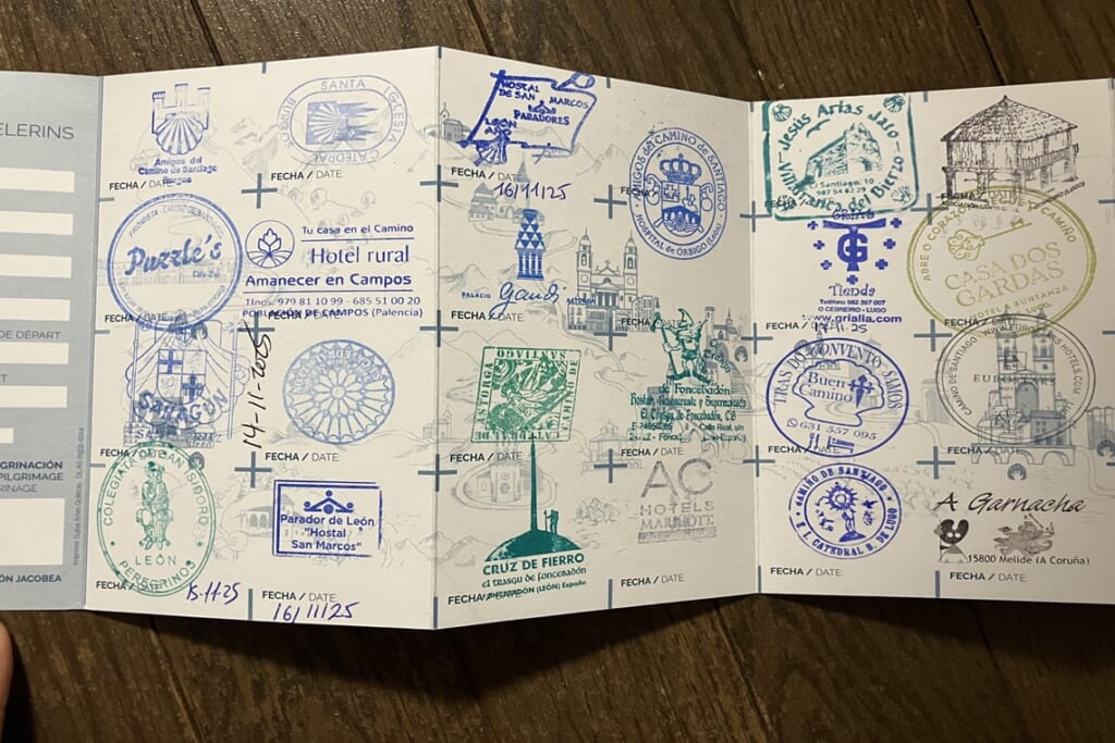 旧市街への入り口、サンタマリア門をくぐるとドンと聳えるブルゴス大聖堂。13世紀に建設が始まり、16世紀に完成します。1984年にはユネスコの世界遺産にも登録されました。ホテルは大聖堂から徒歩10分弱。夜のライトアップされた姿もとても美しい聖堂です。今回は巡礼路を歩く旅なので、ご参加の皆様には巡礼手帳(クレデンシャル)をご用意し、記念のハンコを集めながらゴール地点のサンチャゴ・デ・コンポステーラを目指します。