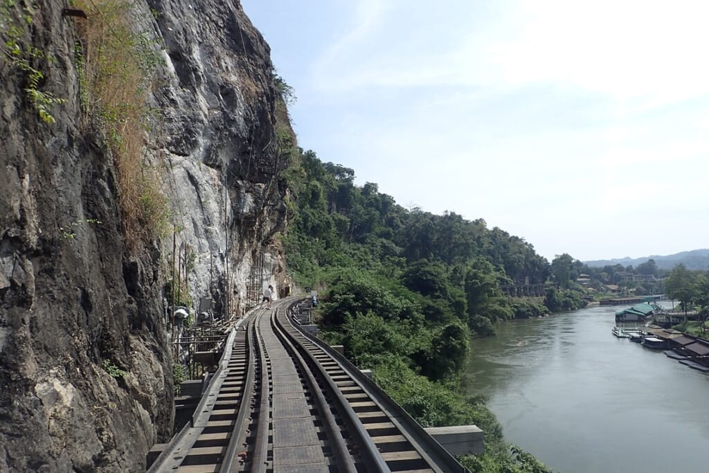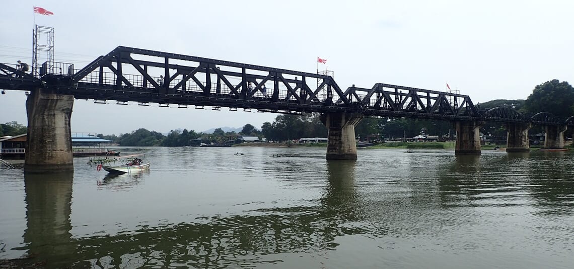 カンチャナブリーはバンコクより西へおよそ130キロにある、小さな町です。ここで最も有名な場所といえば、名画『戦場にかける橋』の舞台となった「クワイ川鉄橋」でしょう。第二次世界大戦中、日本軍は連合軍捕虜やアジア各国の労働者(ロウムシャと呼んでいました)に、タイからビルマまでを通る約415キロの鉄道網を造らせましたが、劣悪で過酷な労働環境に多くの尊い命が奪われました。