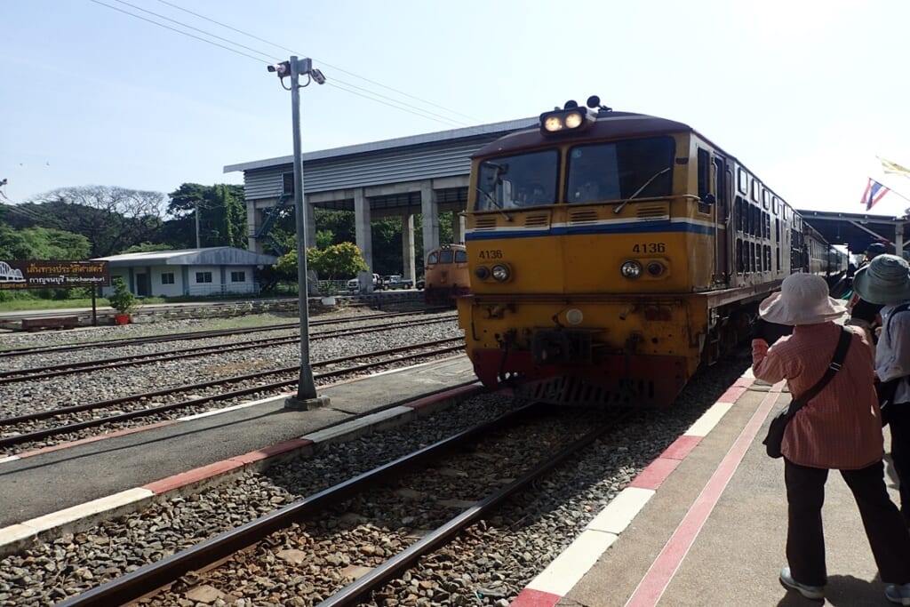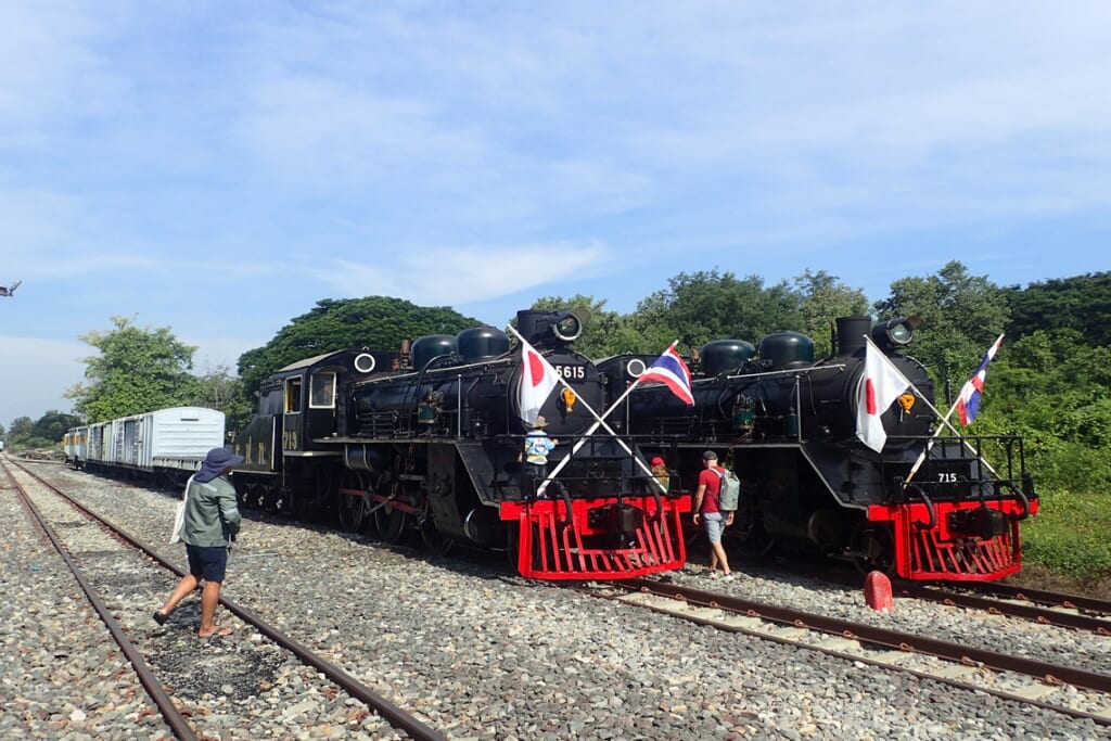 その歴史的な背景から、決して明るいばかりの訪問地ではありませんが、完成より80年が経過した今なお、タイ国内では泰緬(タイ・ビルマ)鉄道の一部区間が運行しています。バンコク近くのトンブリー駅からミャンマー近くのナムトック・サイヨーク駅まで、およそ150キロの道のりを1日に数往復。のどかな田園風景をゆっくりと走る様がなんとも旅情にあふれる鉄道ファン垂涎の鉄道で、先ほどのクワイ川鉄橋や断崖に立つ木造高架橋「アルヒル桟道橋」なども走行します。
