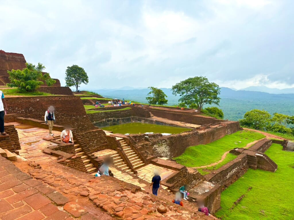 また、旅のハイライトでもあるシギリヤ・ロックでは、朝方まで激しく降っていた雨が嘘のように上がり、登頂の頃には空が明るく開けました。「もう少しですよ」「頑張りましょう」と自然に声を掛け合いながら、一歩一歩頂上を目指します。そして頂上に立った瞬間、眼下に広がる360度の大パノラマ。緑の大地がどこまでも続く景色に、全員が感動と達成感に包まれました。下山途中に見学したシギリヤ・レディのフレスコ画は、1500年以上前に描かれたとは思えないほど色彩鮮やかで、表情や所作も実に豊か。厳しい環境の中で今なお残るその美しさに、皆様深く魅了されていました。
