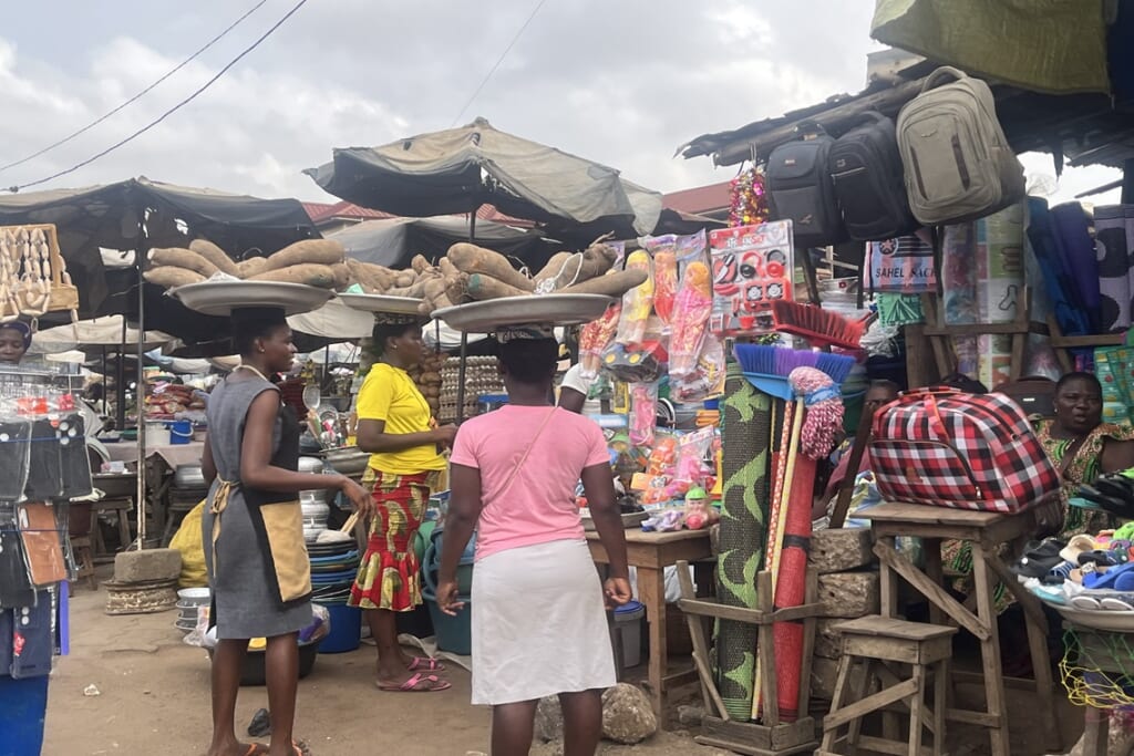 ガーナの首都アクラやアシャンティ王国の都クマシ、ベナンで最も大きな町コトヌー、行き交う人、モノ、その活気には常に圧倒されました。今回訪れた国々の人口の平均年齢は20.1~20.7歳程度、これから国を背負っていく若い力によるエネルギーはすごかったです。頭の上に器用にモノをのせ販売している女性(そのせいか女性はみんな背筋がピンとしていて歩く様が非常にかっこよかったです)、主食のヤムイモ、バナナからありとあらゆるものが町中で売られていて、話しかけると気さくに笑顔で接してくれます。