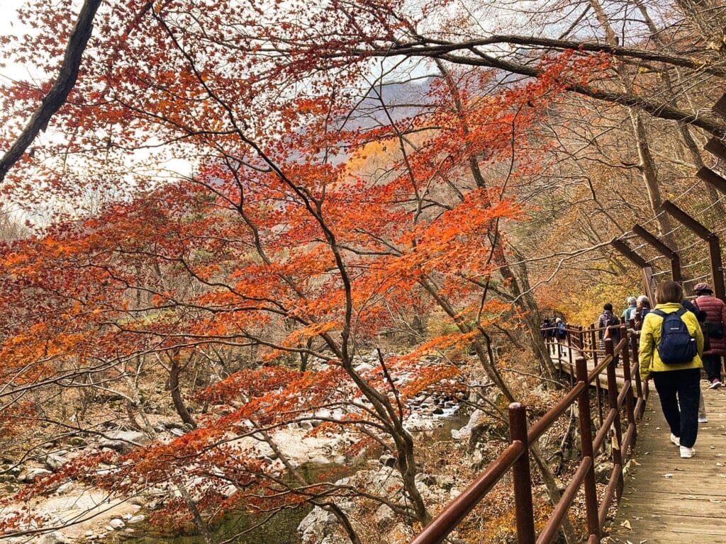 紅葉スポットのペムサゴル渓谷沿いを散策