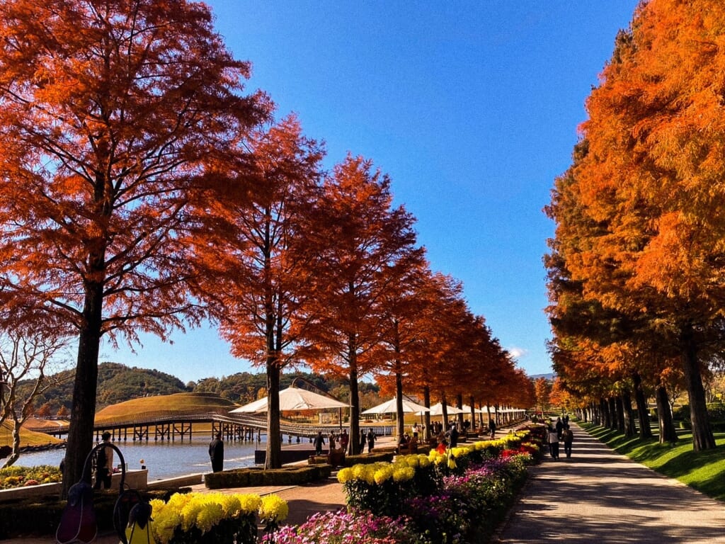 世界5大沿岸湿地の一つである順天湾を保護するために造成された韓国第1号の国家庭園では、さまざまな景観を楽しむことができました。観光船で庭園内を巡った後、うずまき型の丘陵や紅葉したメタセコイアの並木道、色とりどりのお花畑など、見どころの多さに圧倒されました。スカイキューブという小型モノレールにも乗車し、高い目線からの眺めも堪能。そしてミニバスで湿地帯へ移動すると、黄金色に輝く葦畑が広がり、まるで絵画のような美しさでした。ここは2014年にオープンした比較的新しいスポットですが、自然と人工の調和が見事に表現された空間が広がっていました。