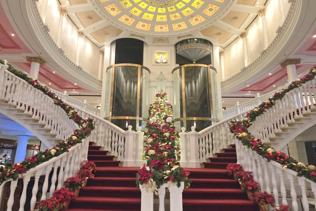 船内ロビーにはクリスマスの装飾が施されていました