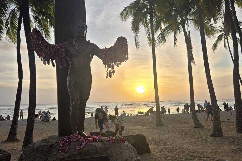 ホテルの目の前にある「ワイキキビーチ」のサンセット