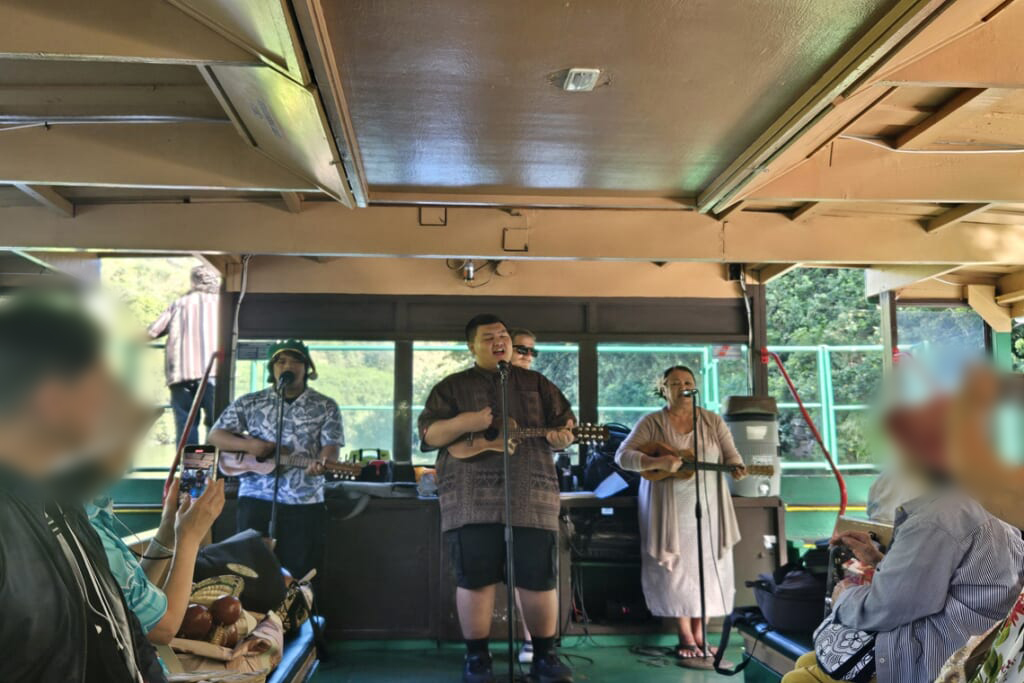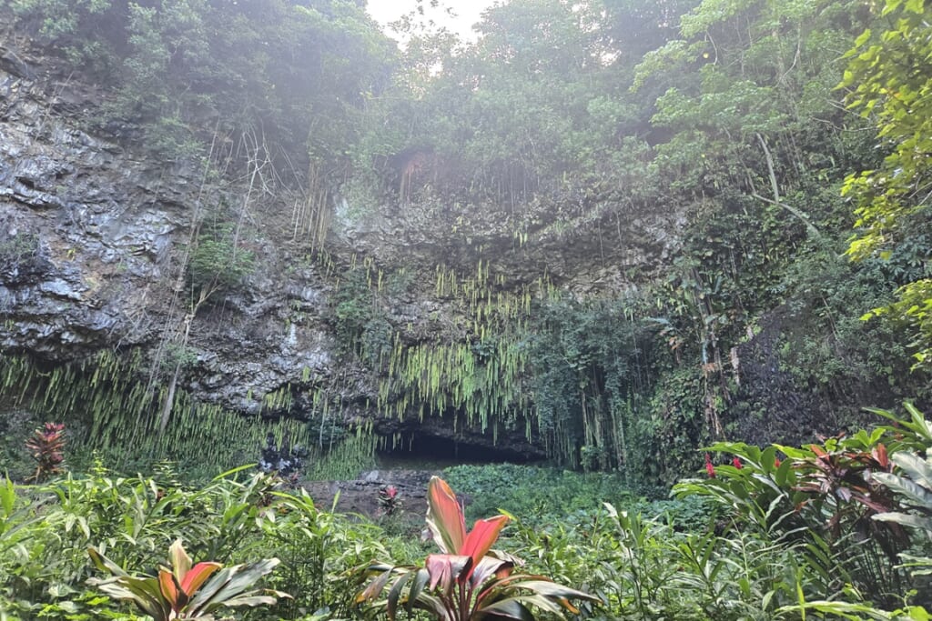 ワイアル川は船で遡ることができる川です。川船でゆっくり進むと、両岸には熱帯植物が生い茂り、まるでジャングルの中を進んでいるかのような気分になります。船の中ではハワイアンバンドの生演奏とフラダンスがありました。途中で訪れるシダの洞窟は、無数のシダに囲まれた神秘的な空間で、ハワイの古代王族が儀式を行ったとも伝えられる特別な場所。カウアイ島の静けさと神聖さを感じました。