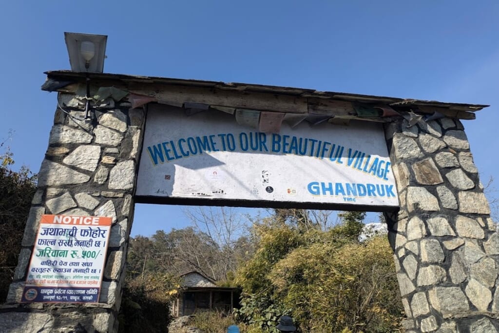 ガンドルック村の入口に到着、ロッジまであと一息!