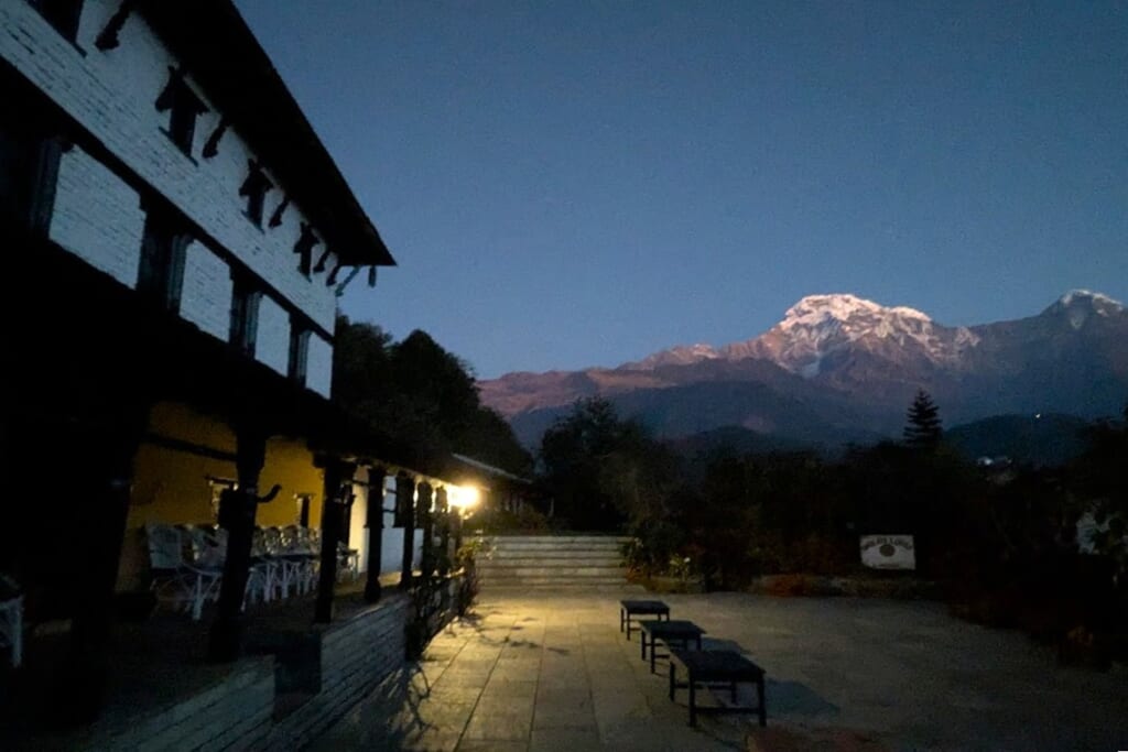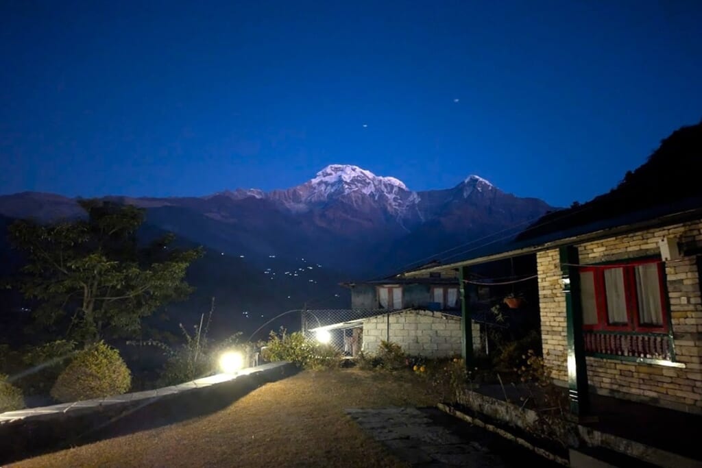 夕食後、月明かりに照らされて浮かび上がるアンナプルナ・サウス