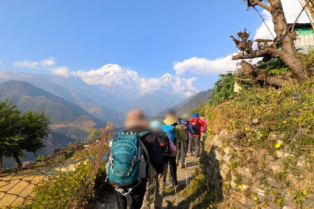 サランコットの丘に建つ「ホテル アンナプルナ・ビュー」からさらに奥地へ、4WD車と徒歩でアンナプルナ・サウスにグングン近づくトレッキングのツアーに行ってきました。15㎞ほどの山道歩きと2000段を優に超える階段の上り下りはかなりハードでしたが、目的地に到着した時の感動と充実感は言葉では表せない特別なものでした。誰一人として脱落することなく完走した2泊3日のトレッキングの様子を写真とともにお届けします。