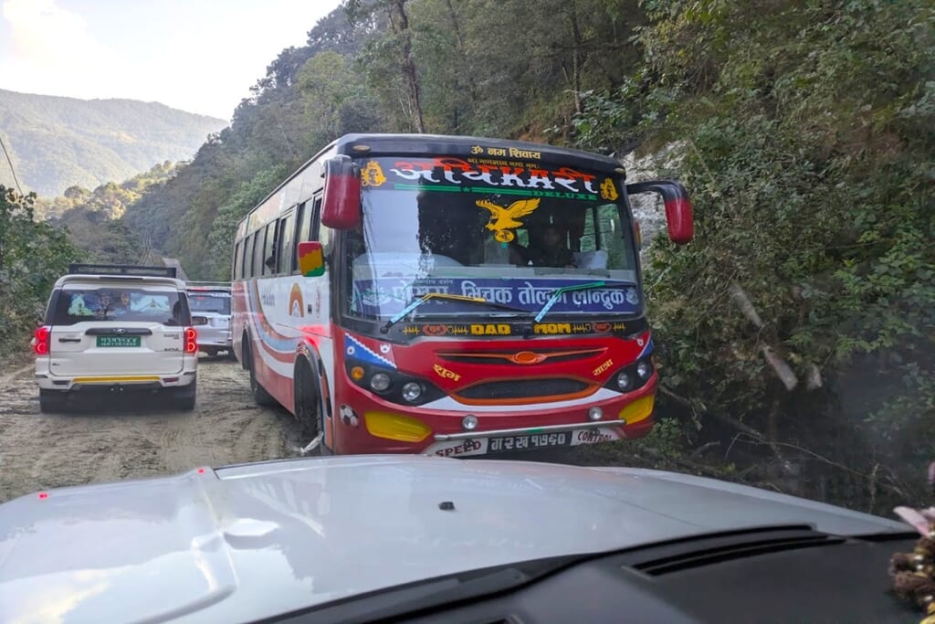 途中ですれ違ったバスはポカラ行きの定期バスでした