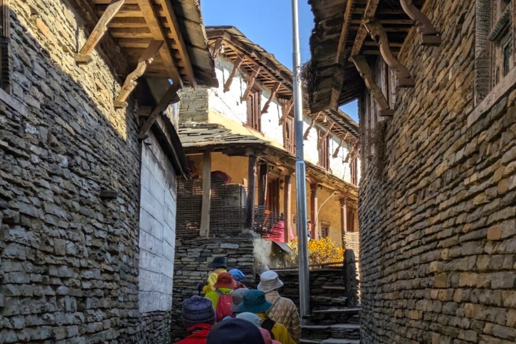 昔ながらの石造りの家々が密集するグルン族の村