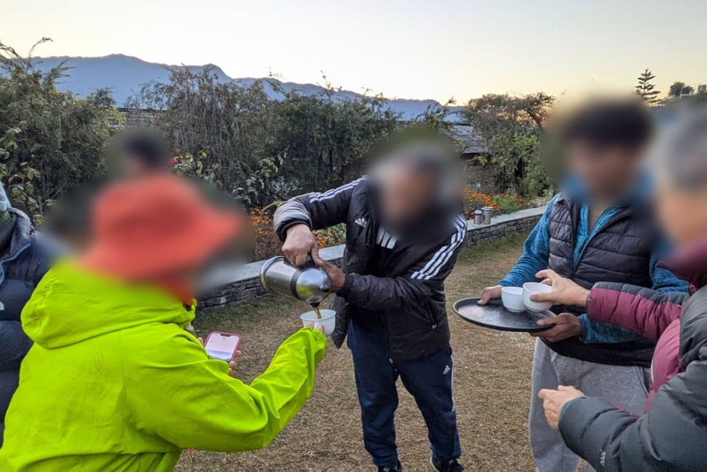 山を見ながらのチャイタイム、新しい一日の始まり!