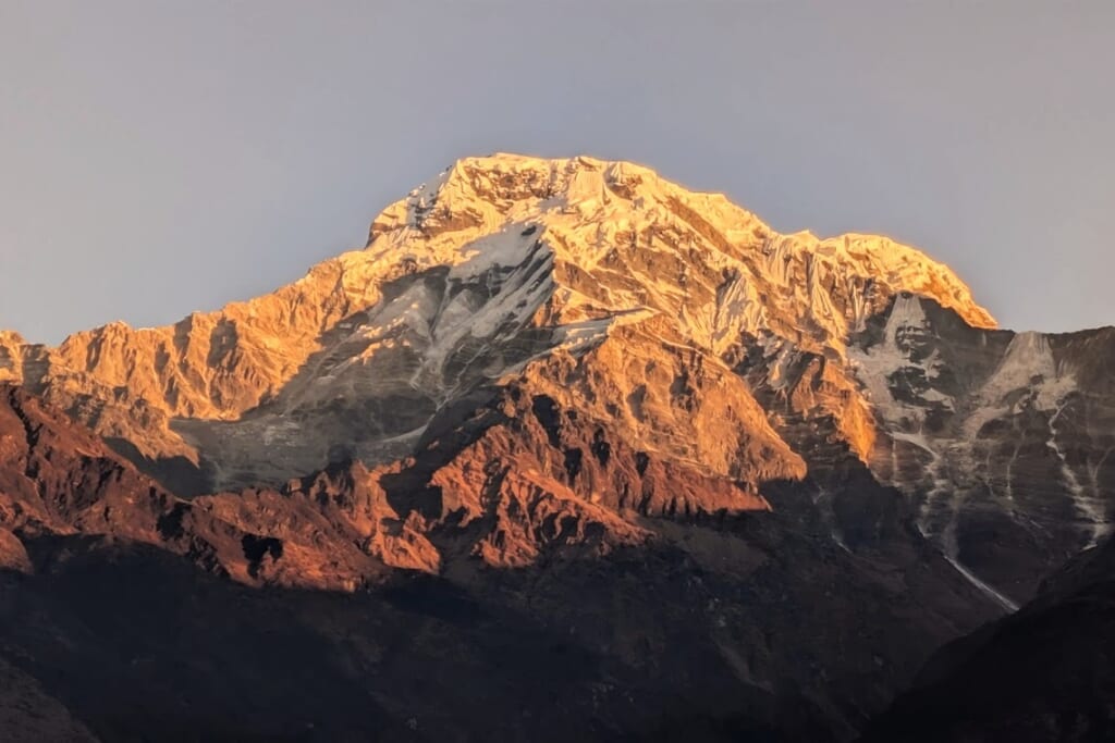 刻々と色を変えるアンナプルナ・サウス!