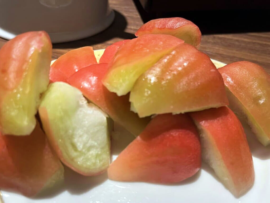 旅の途中、ガイドさんより台湾特有のフルーツ「レンブ(蓮霧)」の差し入れがあり、皆様にご賞味いただきました。シャキッとしたみずみずしい食感と、ほんのりとした甘さが特徴で、台湾では暑い季節に親しまれている果物のひとつです。日本ではなかなか味わう機会の少ないフルーツに、「さっぱりしていて美味しい」「初めて食べた」と驚きの声も聞かれ、旅ならではの食体験となりました。