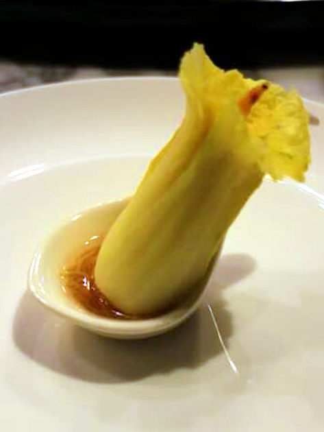 見学後は、博物院に隣接するレストラン「故宮晶華」へ。博物院の至宝をモチーフにした創作宮廷料理が提供されており、この日の夕食では「翠玉白菜」を模した一品も登場。本物の名品を鑑賞した直後に、その姿を料理で楽しむという、ここでしか味わえない特別な食体験となりました。