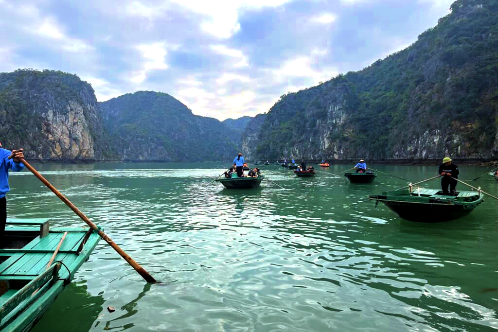 ハロン湾では、まだ広く知られていない静かな海域のランハー湾クルーズへ。全室スイート仕様の「インドシン・グランド号」で、1泊2日の船旅を満喫しました。やや雲が多い天候でしたが、海上に奇岩が立ち上がる雄大な景観の中で、非日常の時間をお過ごしいただきました。船内では生春巻きの調理体験や、夕食後のイカ釣り体験などのイベントも豊富にあり、楽しいひとときをお過ごしいただきました。クルーズ2日目ではカットバ島のチュンチャン洞窟にも足を運び、自然が長い年月をかけてつくり上げた神秘的な空間と迫力ある鍾乳石を間近に体感できたことも、旅の印象を深めてくれました。