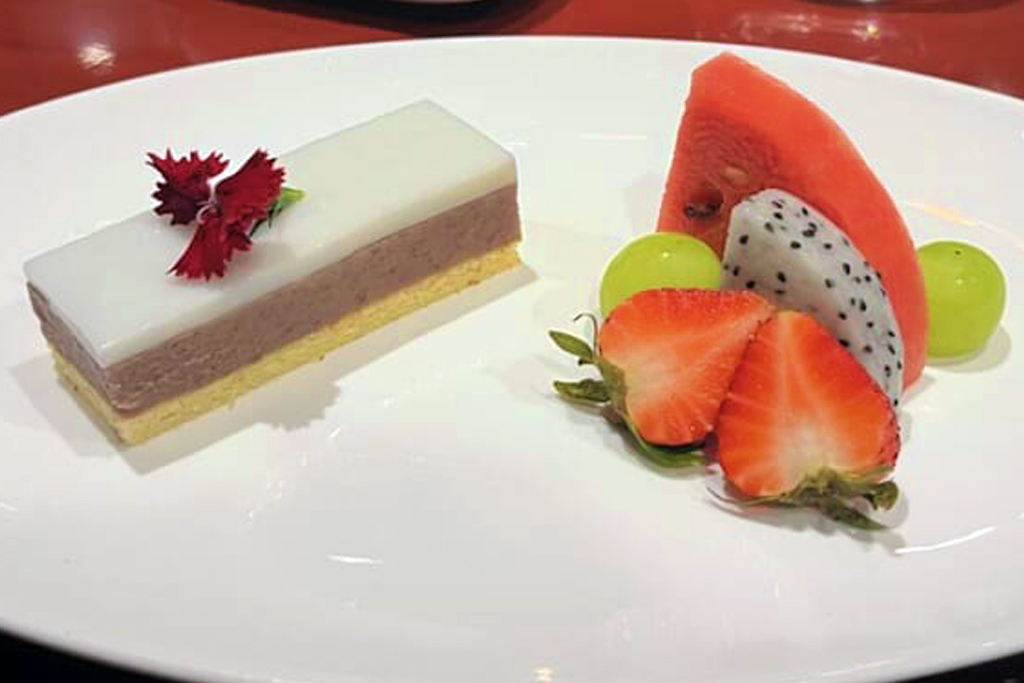 また、2日目の夕食はホテルの看板フレンチ「ル・ボリュー」で、100年超の歴史に裏打ちされた格調高いサービスとともに、上質な食材を生かしたフレンチを堪能しました。