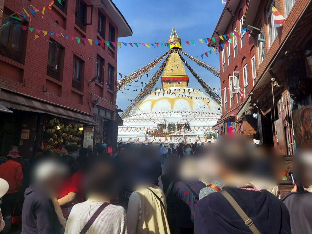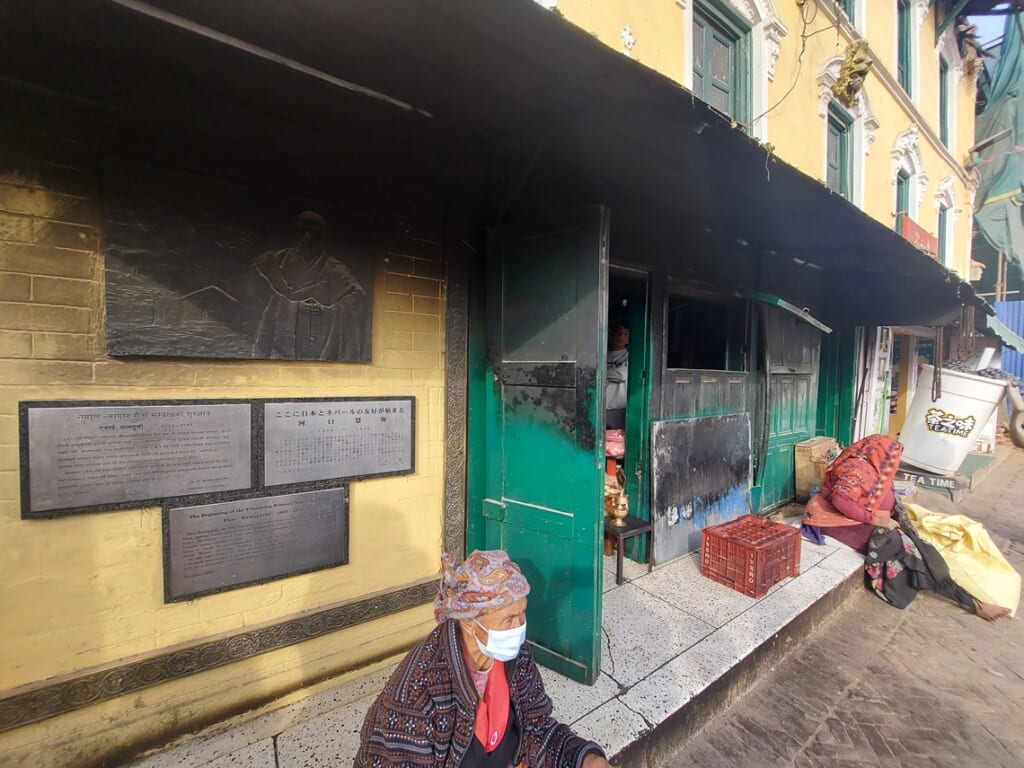 カトマンズでは2つの世界遺産を訪問しました。ネパールに到着した日は、チベット仏教の寺院が集まる仏塔ボダナートへ。ネパールを代表する目玉寺院の周りには、仏具や曼荼羅を売る多くの店が囲んでいました。日本人で初めてネパール、チベットを訪れた僧侶、河口慧海氏を紹介したプレートもご覧いただきました。