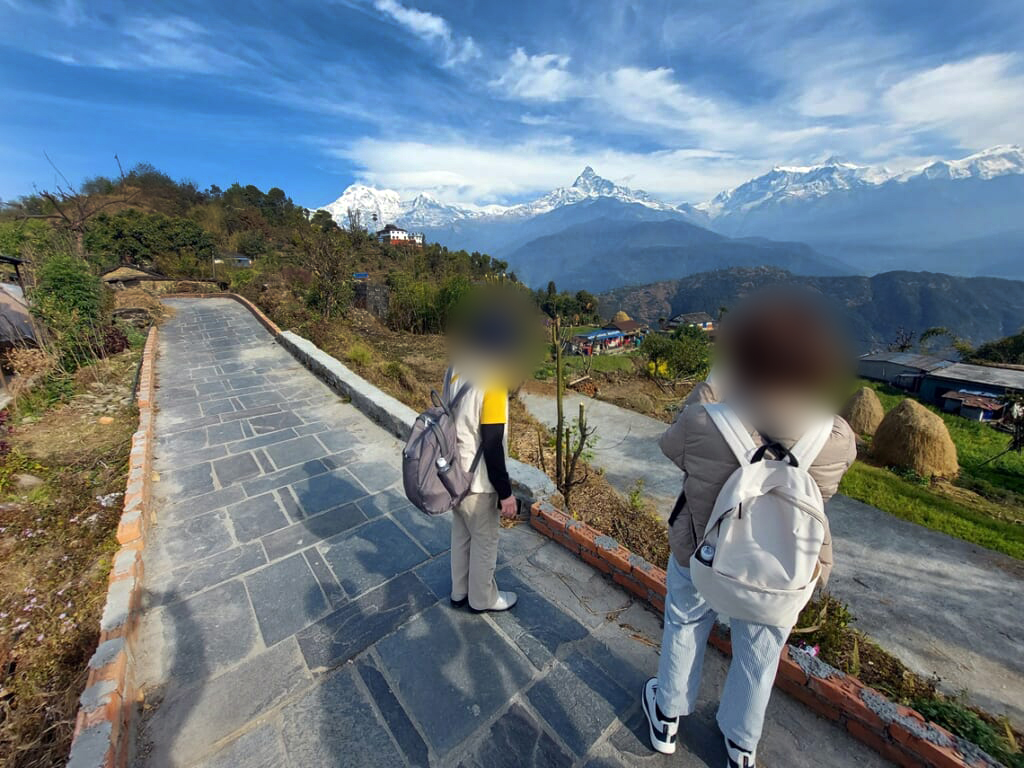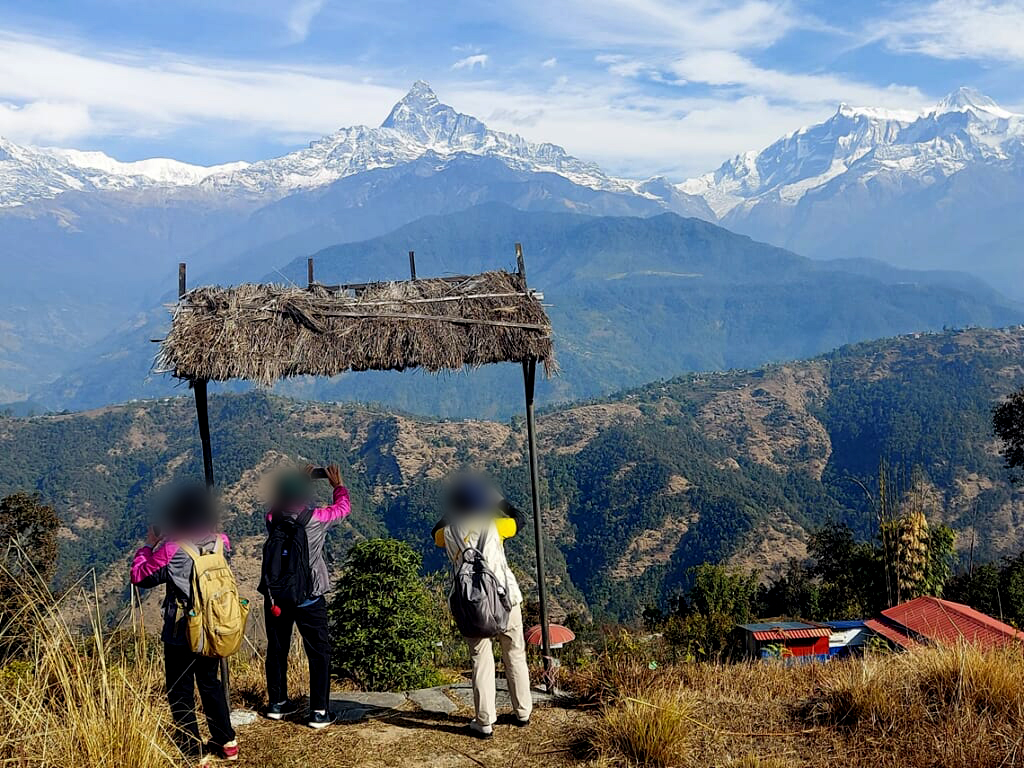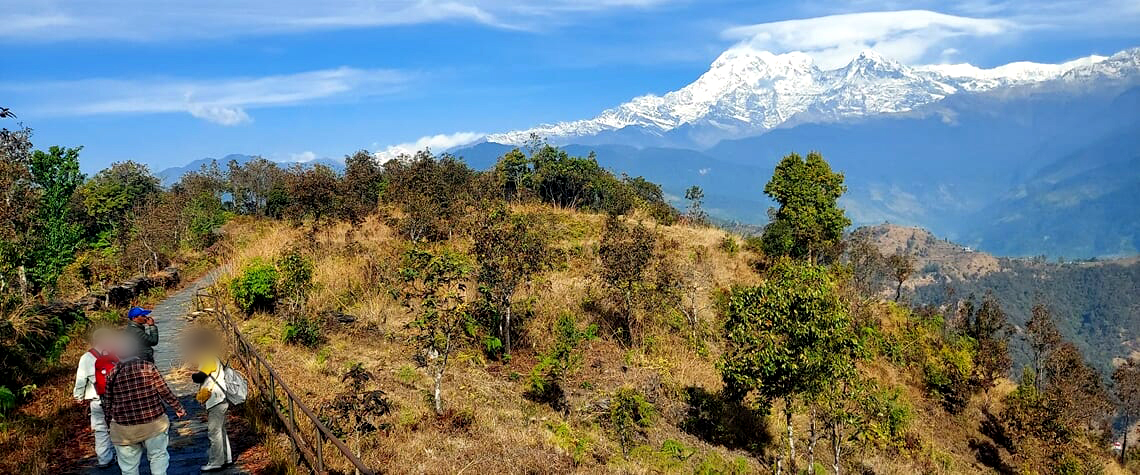 ホテル・アンナプルナ ビューでの滞在中には、アンナプルナ連峰を望むトレッキングルート、ノーダラの丘への簡単なトレッキング体験もお楽しみいただきました。天候にも恵まれ、見事なヒマラヤを見ながらのトレッキングでした。ヒマラヤの眺めとともに、素朴なネパールの村の風景にも出会えるトレッキングの楽しさも体験いただきました。