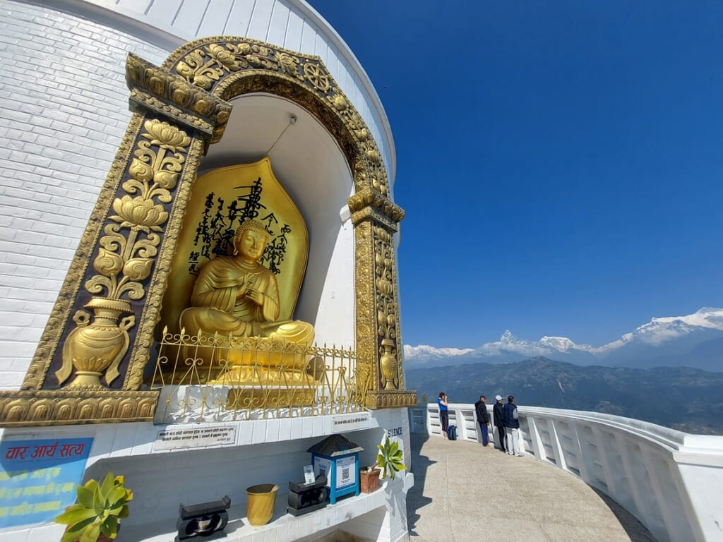 ホテル・アンナプルナ ビューでの3連泊中の自由行動では、ペワ湖周辺の見どころも訪れました。大きなガネーシャ神の像があるサランコットの展望台や、大きなシヴァ神像のあるプンディコット寺院、日本山妙法寺の白いパゴダ、ペワ湖をボートで渡り訪れたバラヒ寺院などを楽しみました。