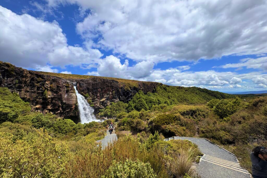 マオリ族の聖地と呼ばれるトンガリロ国立公園のハイキングでは、進むと次々に移り変わる多彩な景観を楽しめます。目的地であるタラナキ滝に着いた瞬間の達成感は大きく、目の前の水の力に疲れが洗われるようでした。ニュージーランドの最高峰アオラキ/マウントクック国立公園のハイキングでは、最高峰マウントクックは雲に隠れてしまっていましたが、氷河が削りとった大地の跡に沿って歩くハイキングトレイルは迫力満点でした。