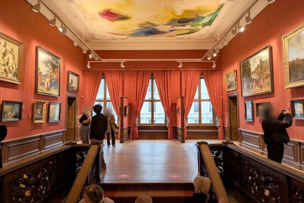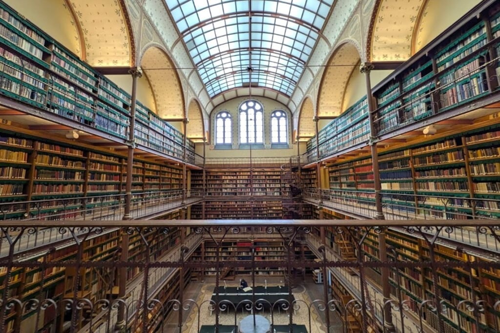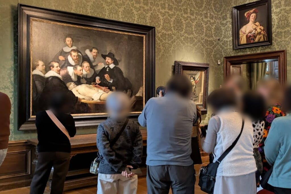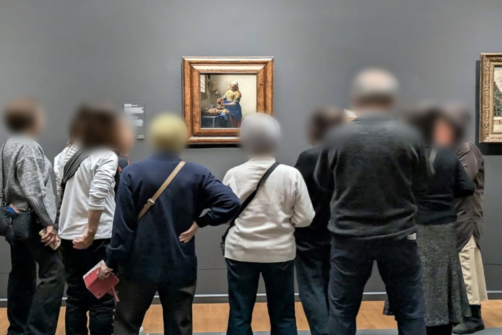 朝早くホテルを出発し、運河沿いを歩いてアムステルダム国立美術館へ。開館5分前に到着し、まだほとんど人がいない館内をフェルメールのコーナーに直行、私たちだけの空間でたっぷりとお楽しみいただきました。門外不出のレンブラントの傑作『夜警』は修復中のためガラス越しでしたが、かぶりつきで見ることができました。また世界で最も美しい図書館とも言われるカイパース図書館、オランダ黄金時代のお宝も見学しました。
