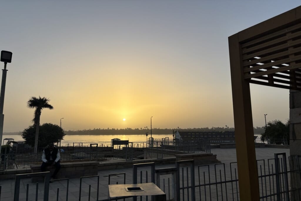 美しいナイルの夕日を、船のサンデッキや寄港地から拝むことができました